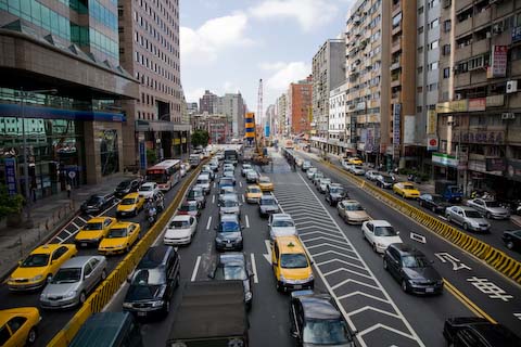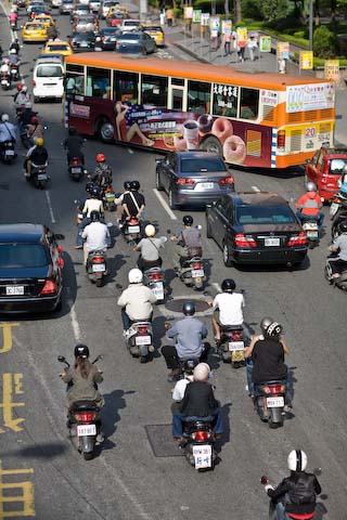 Anyway, there were a few overpasses that I crossed and one of them had a view of a few scooters. This is a perfect representation of what you’d see at nearly any intersection in Taipei, scooters scrambling for their small section of the road.