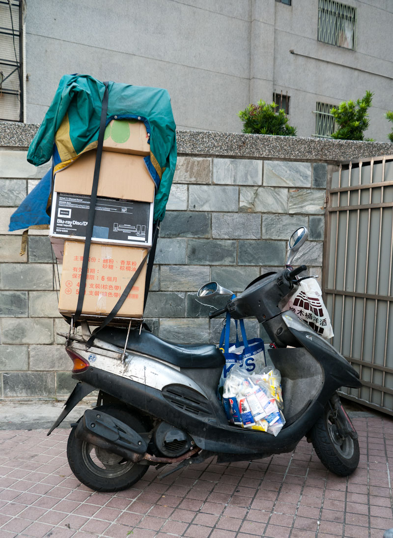 November 8, 2009November 8, 2009 Stack-em Up and Strap-em Down Another example of how utilitarian a scooter can be. There's even a complete Blue Ray home entertainment system in that stack. Share this: Click to share on Facebook (Opens in new window) Facebook Click to share on X (Opens in new window) X Click to share on Pinterest (Opens in new window) Pinterest Click to email a link to a friend (Opens in new window) Email Like Loading...